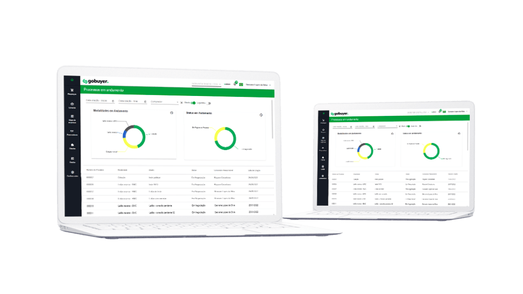 A Gobuyer possui um painel interativo onde você analisa os dados das suas transações, encontra o quanto de economia foi gerada, tempo médio de processo e outras métricas para acompanhar e otimizar seu processo de compra